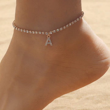 Elevate your fashion game with this Crystal Zircon Initial Letter Alphabet Cuban Link Anklet. Made...