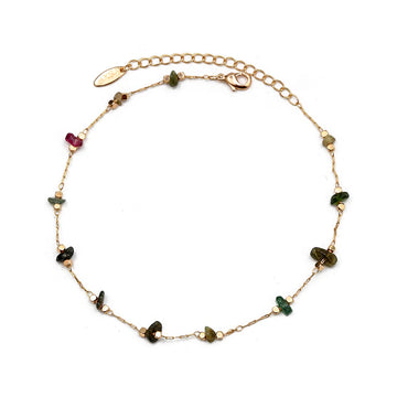 This luxurious and stylish Lucky Eye Natural Stone Anklet features a gold-colored copper chain embellished...