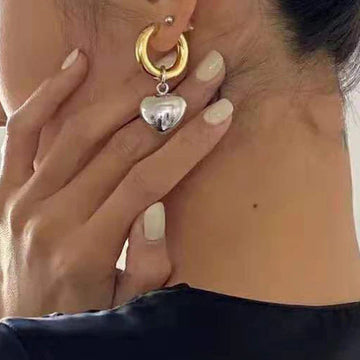 Make a statement with these Statement Minimalist Gold Silver Colour Mixed Solid Heart Pendant Hoop...