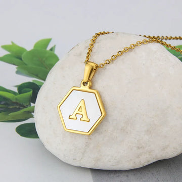 Embrace the allure of our Gold Hexagon Initial Letter Pendant Necklace. Adorn yourself with a...