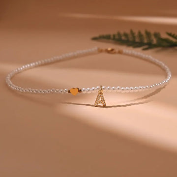 Embrace the beauty of pearls and personalization with our Pearl Bead Initial Letter Heart Pendant...
