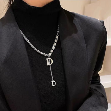 Make a statement with this Design Sense micro setting zircon D letter pendant long necklace....