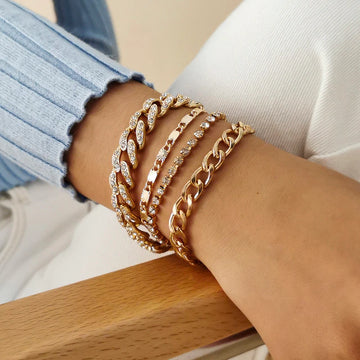 Shine bright like a diamond with this luxury shiny rhinestone bracelet set. With four pieces...