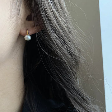 Elevate your style with these engagement banquet temperament imitation pearl hoop earrings. Made with 925...