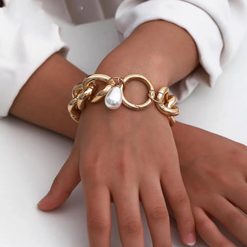 Make a statement with this Gothic Big Imitation Pearl Charm Bracelet Bangle. With its lock...