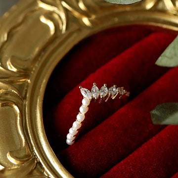 Feel like royalty with this 925 Sterling Silver Exquisite Crown Ring Half Zircon Half Pearl...