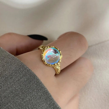 Let your natural beauty shine through with this stunning Natural Labradorite Cabochon Stone Ring. The...