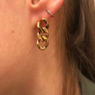 These stainless steel stud Cuban link chain gold plated dangle earrings are the perfect addition...