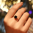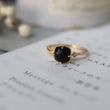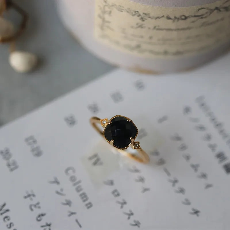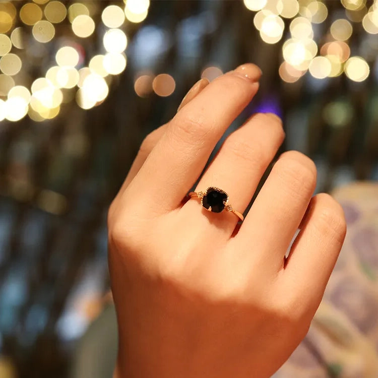 925 Sterling Silver 18K Gold Plated Black Natural Agate Zircon Square Ring