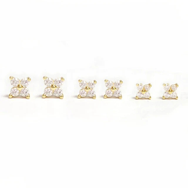 925 Sterling Silver Crystal Flower Stud Earrings