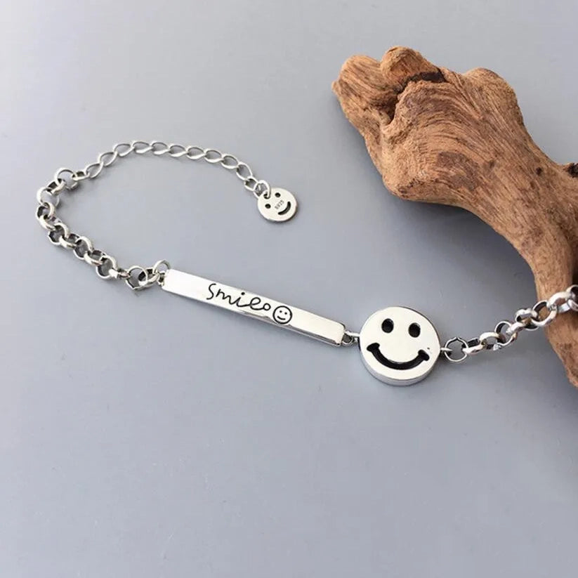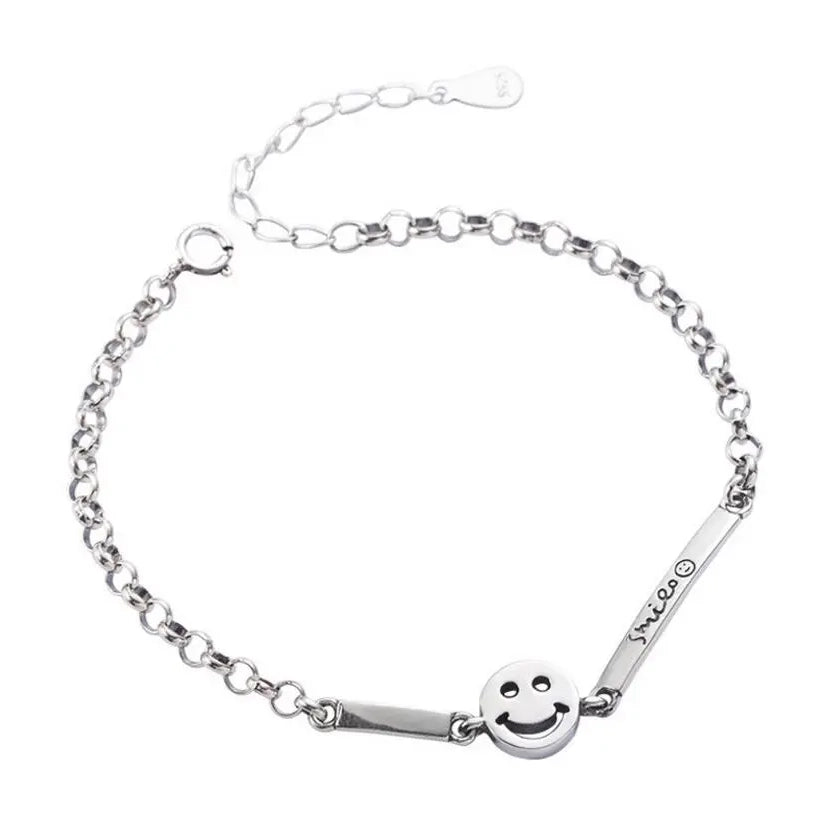 925 Sterling Silver Smiling Face Funny Bracelet