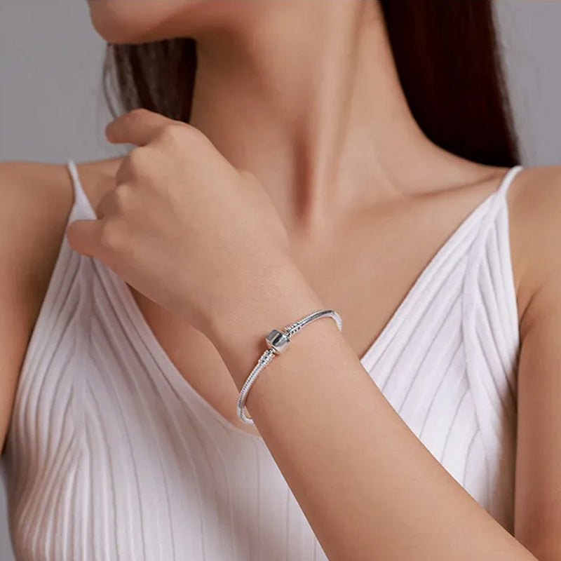 Curate your own style journey with our 925 Sterling Silver Snake Chain DIY Bangle. This blank canvas invites you to infuse your personality, creating a piece as unique as you are. The snake chain design adds a sleek and contemporary touch, ensuring your creation exudes modern charm. Embrace the freedom to express yourself with this versatile and elegant bangle, where every bead and detail tells a story of your individuality.