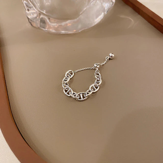 925 Sterling Silver Tassel Chain Adjustable Ring