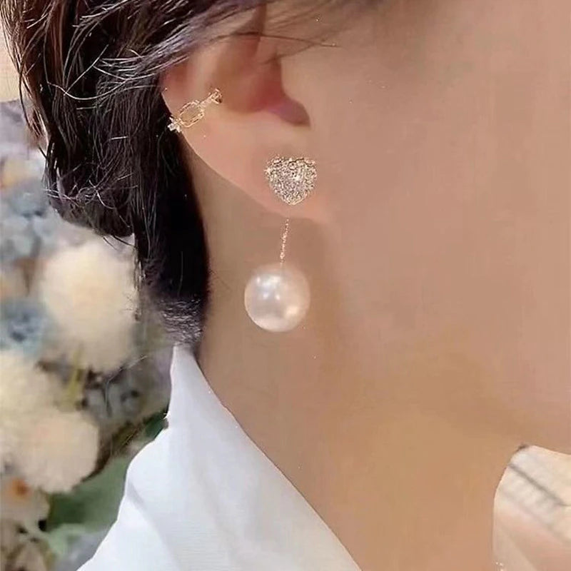 Fall in love with these stunning crystal zircon love heart earrings. Made with high-quality zinc alloy and featuring sparkling clear rhinestones and pearls, these earrings are the perfect accessory for any occasion. With their timeless design and premium materials, these earrings are a must-have for any fashion-conscious woman. Available in gold and silver.