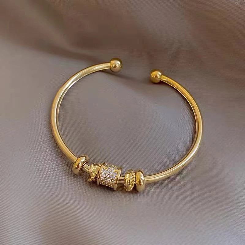 Make a statement with this unique and stylish Cylindrical Transfer Cuff Bracelet. With its cylindrical shape and transfer design, this bracelet is sure to turn heads. Made from high-quality copper, it's both durable and lightweight, making it comfortable to wear. The gold-colour adds a touch of elegance to any outfit. Add this piece to your jewelry collection and elevate your fashion game.