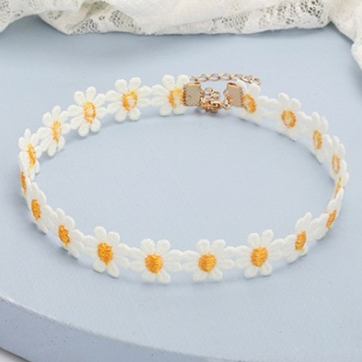 Embrace the delicate beauty of our daisy collar chain necklace. This elegant accessory features a dainty design adorned with charming daisy motifs, exuding a sense of timeless grace. Elevate your style effortlessly with this captivating piece, perfect for adding a touch of elegance and femininity to any ensemble.
