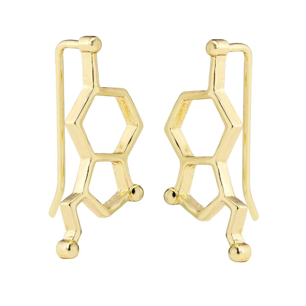 These Fashion Molecule Structure Ear Climbers are a perfect blend of modernity and luxury, transforming the essence of geometric patterns into a stunning accessory for the stylish woman. Crafted from high-quality copper metal, these exquisite stud earrings will elegantly grace your ears with their intricate and trendy design, making them an irresistible addition to your jewelry collection. Elevate your fashion statement and showcase your unique taste with these captivating, luxurious ear climbers that are the epitome of contemporary chic.
