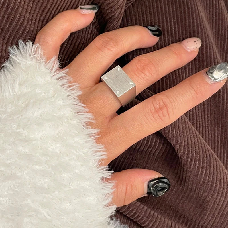 Stand out from the crowd with this Geometric Rectangle Adjustable Punk Ring. The adjustable band and geometric shape create a unique and edgy look, while the durable metal construction ensures lasting beauty. Perfect for any occasion, this ring will become your new favorite accessory.