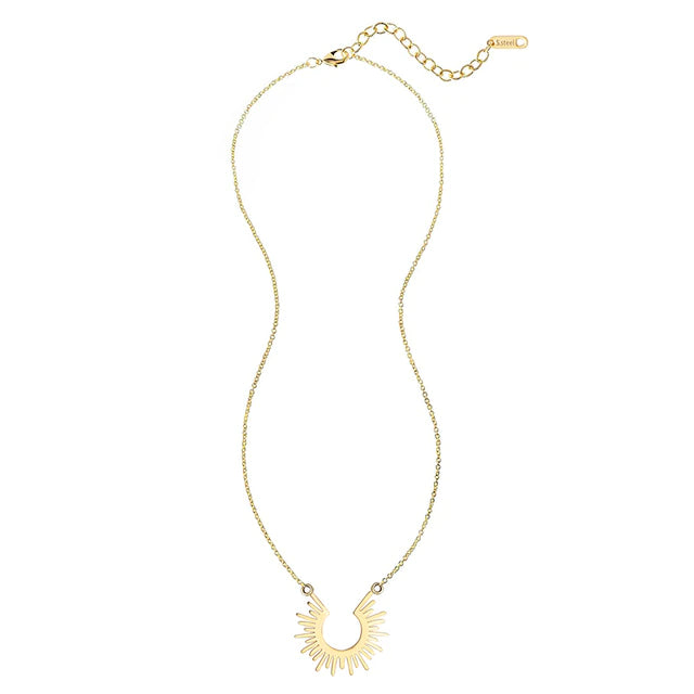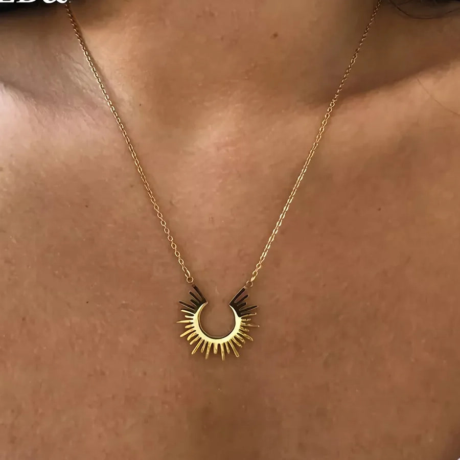 Make a statement with this half circle spiked necklace. The gold colour and stainless steel metal type ensure durability, while the unique spiked design adds a modern touch. Its simplicity makes it perfect for everyday wear or dressing up for a night out.