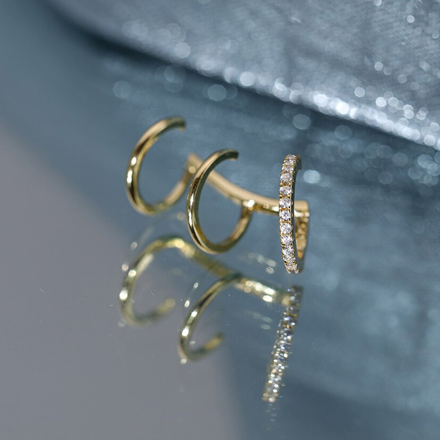 Elevate your ear game with these Aide INS minimalist ear cuffs. Crafted from 100% 925 sterling silver with dazzling zircon stones, these three-layered line ear cuffs are perfect for adding a touch of sophistication to any outfit without the need for piercings. Available in both gold and silver colours, these cartilage clip earrings are a must-have for any fashion-forward individual.