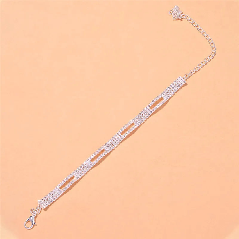 Add a touch of glamour to your ensemble with this luxurious and trendy crystal cubic zirconia chain anklet. Crafted from high-quality alloy, this anklet features sparkling cubic zirconia stones that shimmer and shine with every step you take. The silver color adds a touch of elegance, making it perfect for any occasion. Let this stunning piece be the finishing touch to your outfit, and let your style shine.