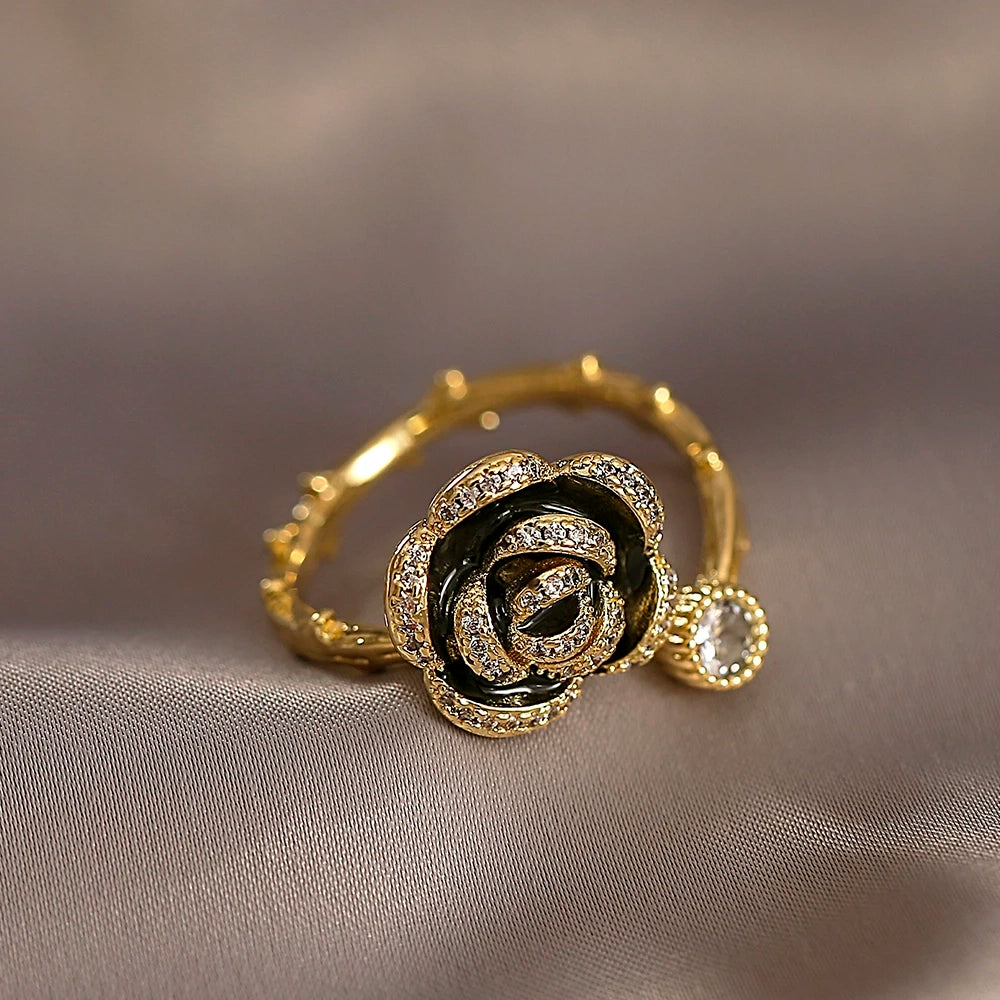 This sexy and mysterious black rose-shaped metal opening ring is the perfect addition to your jewelry collection. Crafted from high-quality brass and with no specified weight or size, this ring features a unique design that will make you stand out from the crowd. Perfect for weddings or any special occasion, this ring is the epitome of sophistication and elegance.