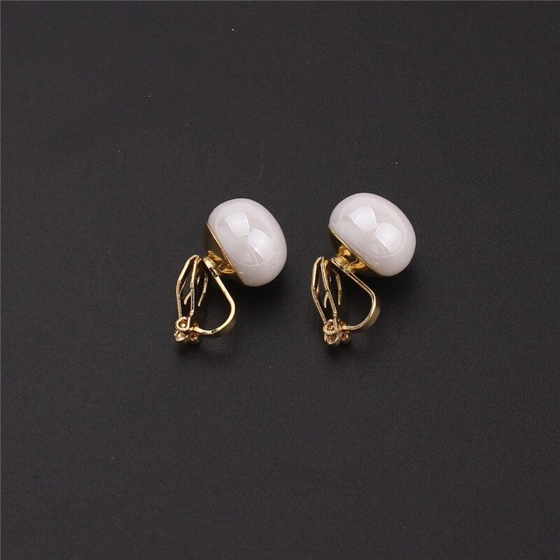 Simulated Pearl Taro Beads Shape Clip on Earrings