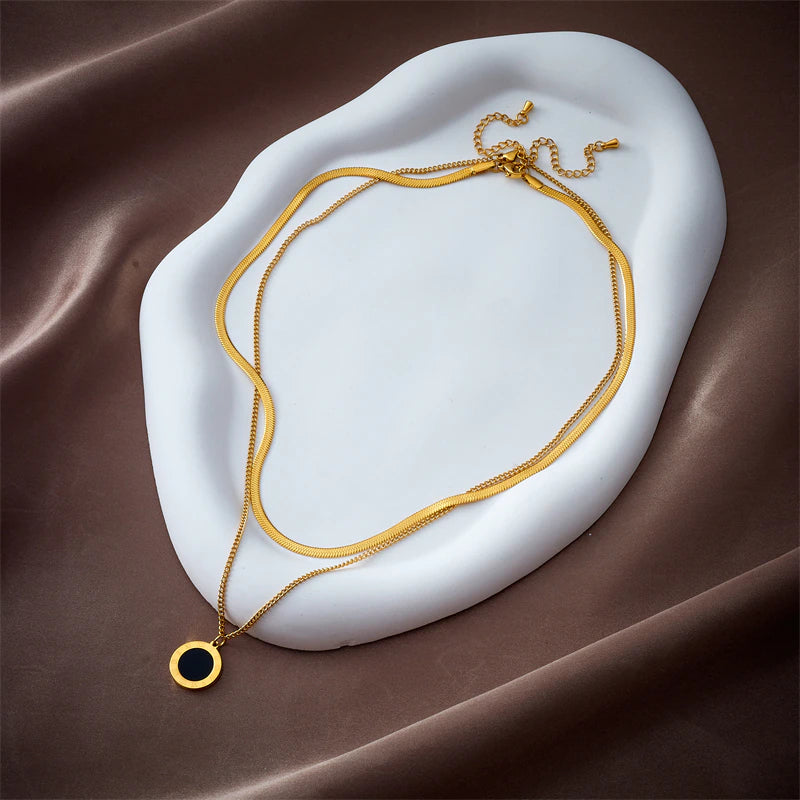 Embrace the minimalistic trend with this Stainless Steel Black Round Pendant Necklace. The sleek black pendant is crafted from durable stainless steel, and features a timeless round design that is perfect for any occasion. The simple yet sophisticated look of this necklace makes it a versatile piece that can be dressed up or down to suit your style. Ideal for the modern woman who appreciates clean lines and understated elegance.