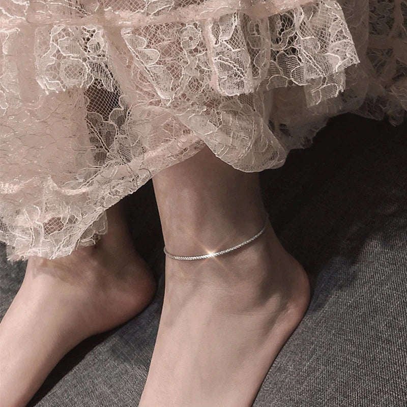 Thin Stamped Minimalist Shiny Chains Anklet