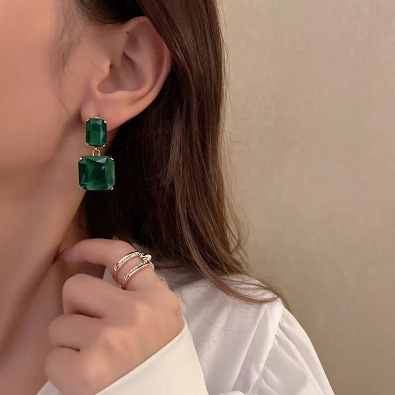 These vintage square clip-on earrings are a stunning addition to any jewelry collection. With a cute and romantic style, these earrings feature a star-shaped pattern adorned with luxurious green stones, adding a touch of elegance to any outfit. Made from high-quality copper alloy, these earrings are durable and long-lasting. They are easy to wear, simply clip them onto your ears, and you're ready to go. These earrings come in an opp bag for safekeeping. Perfect for any occasion, these earrings are a must-have for any fashion-forward woman.